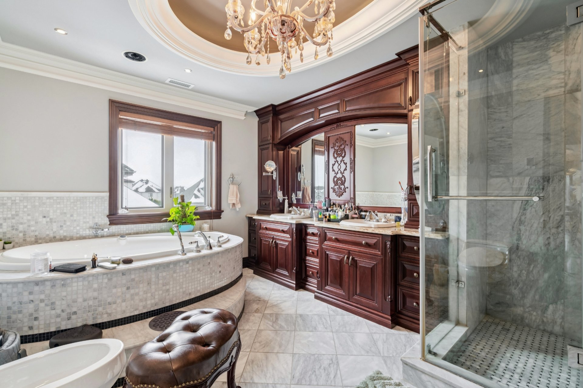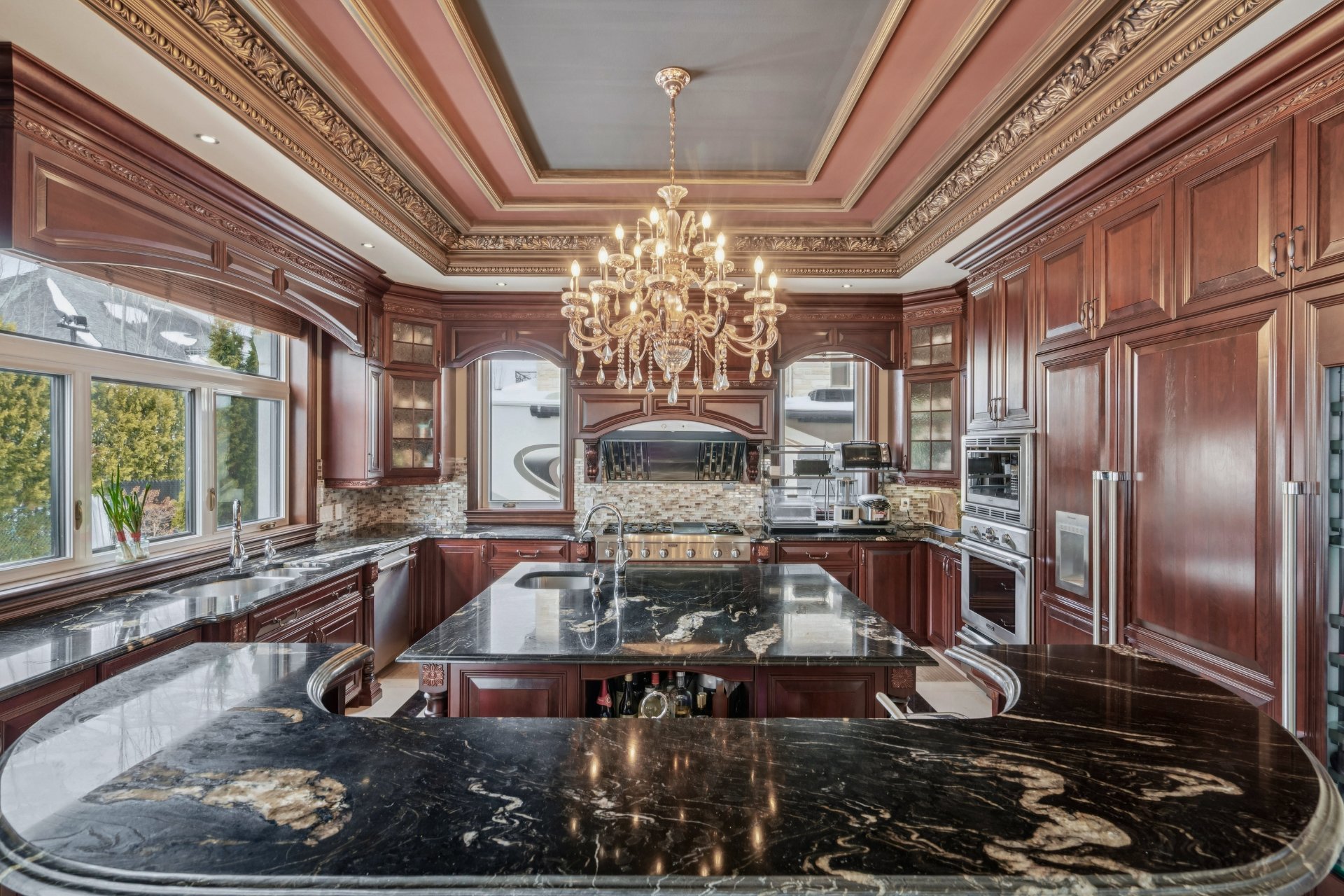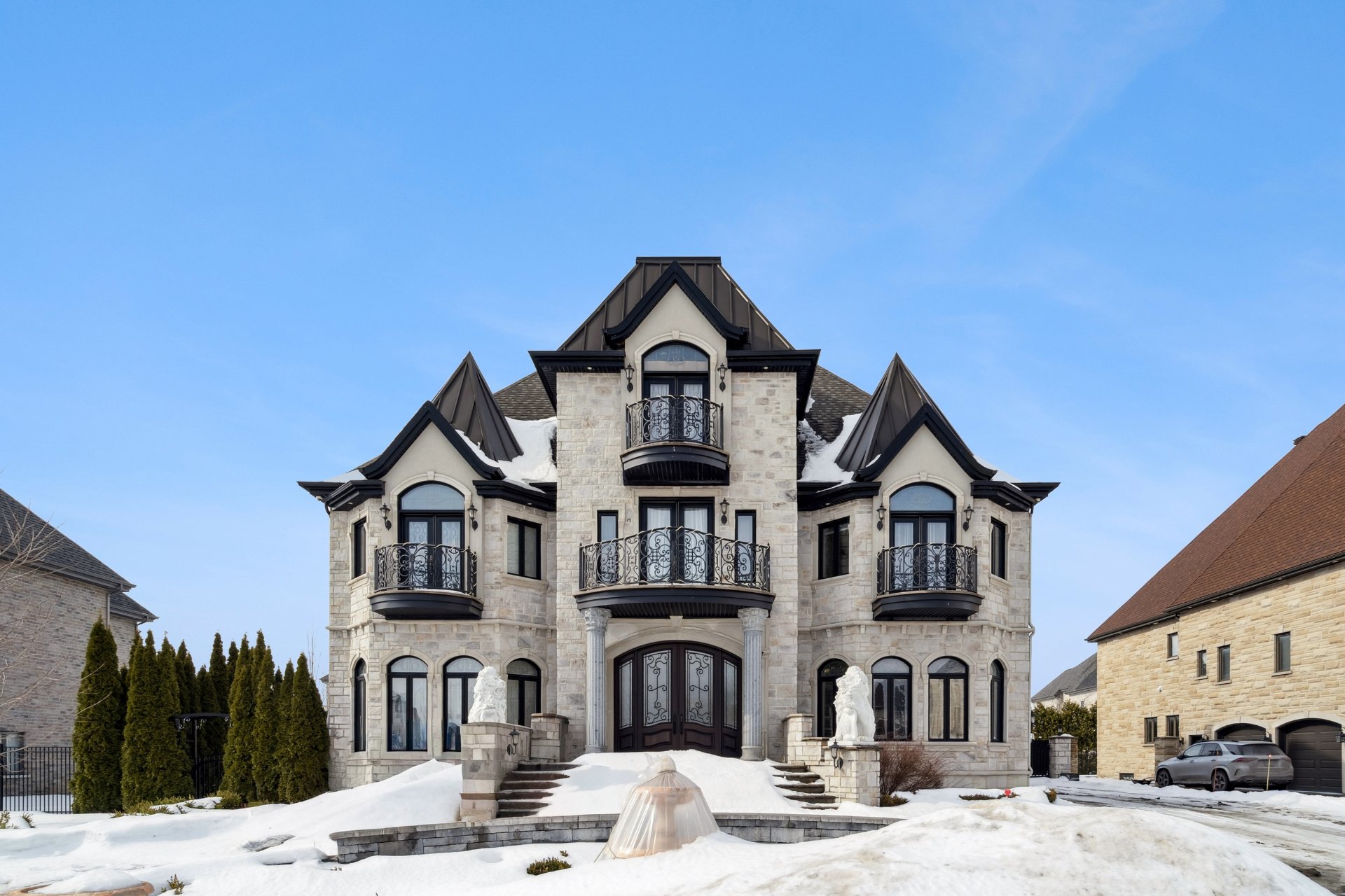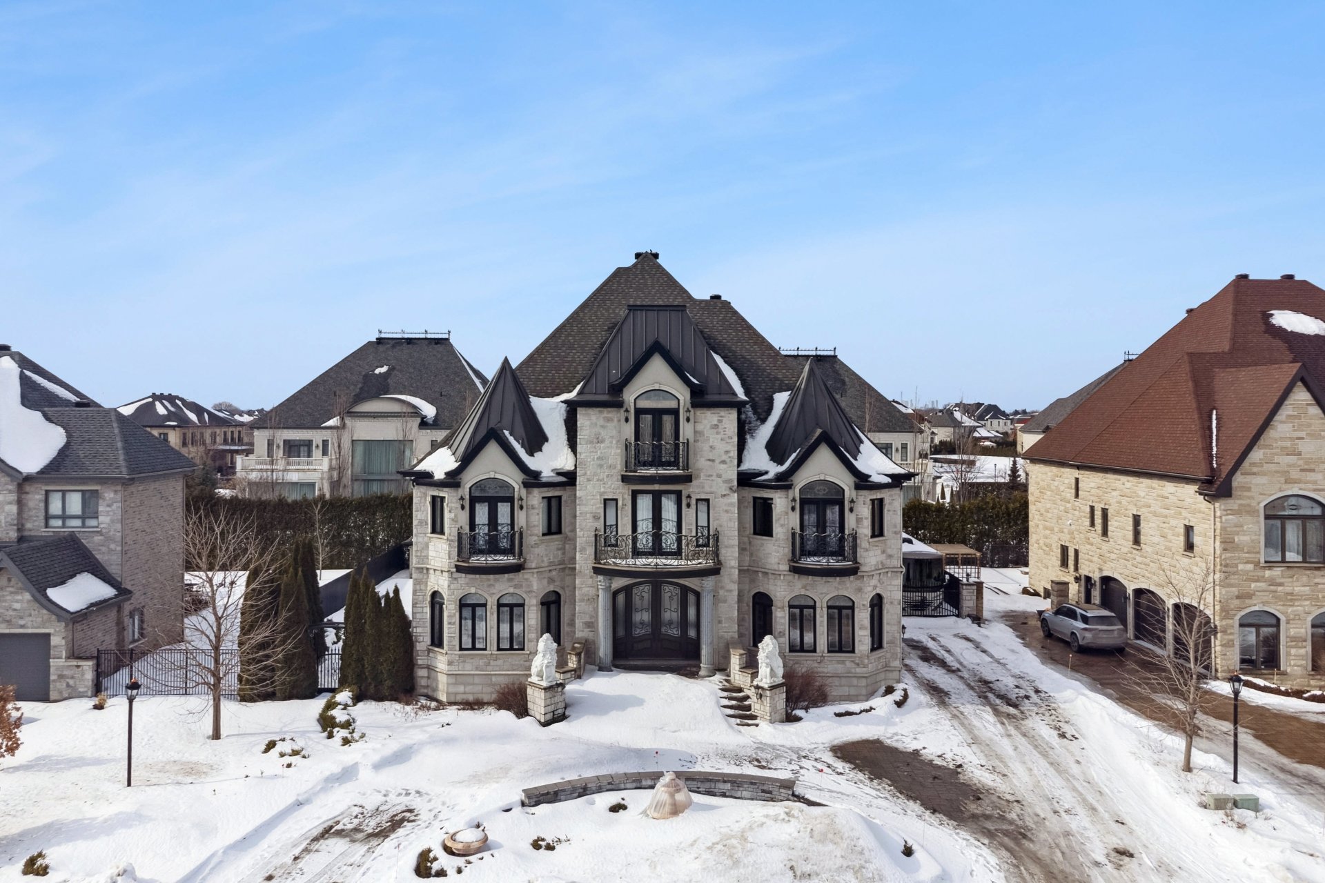 Complétée en 2015, cette propriété d'environ 8 800 pi² au style européen classique offre des matériaux haut de gamme et une finition soignée, dont des portes et planchers en acajou, des armoires sur mesure et un élégant escalier en fer forgé. Un ascenseur privé ajoute au confort. La cuisine de chef est équipée d'électroménagers Thermador et de planchers chauffants, avec un système géothermique pour un confort optimal. À l'extérieur, profitez d'un aménagement avec piscine, spa, gazebo et jardins paysagers -- une demeure d'exception au charme intemporel. Voir ADDENDA.
