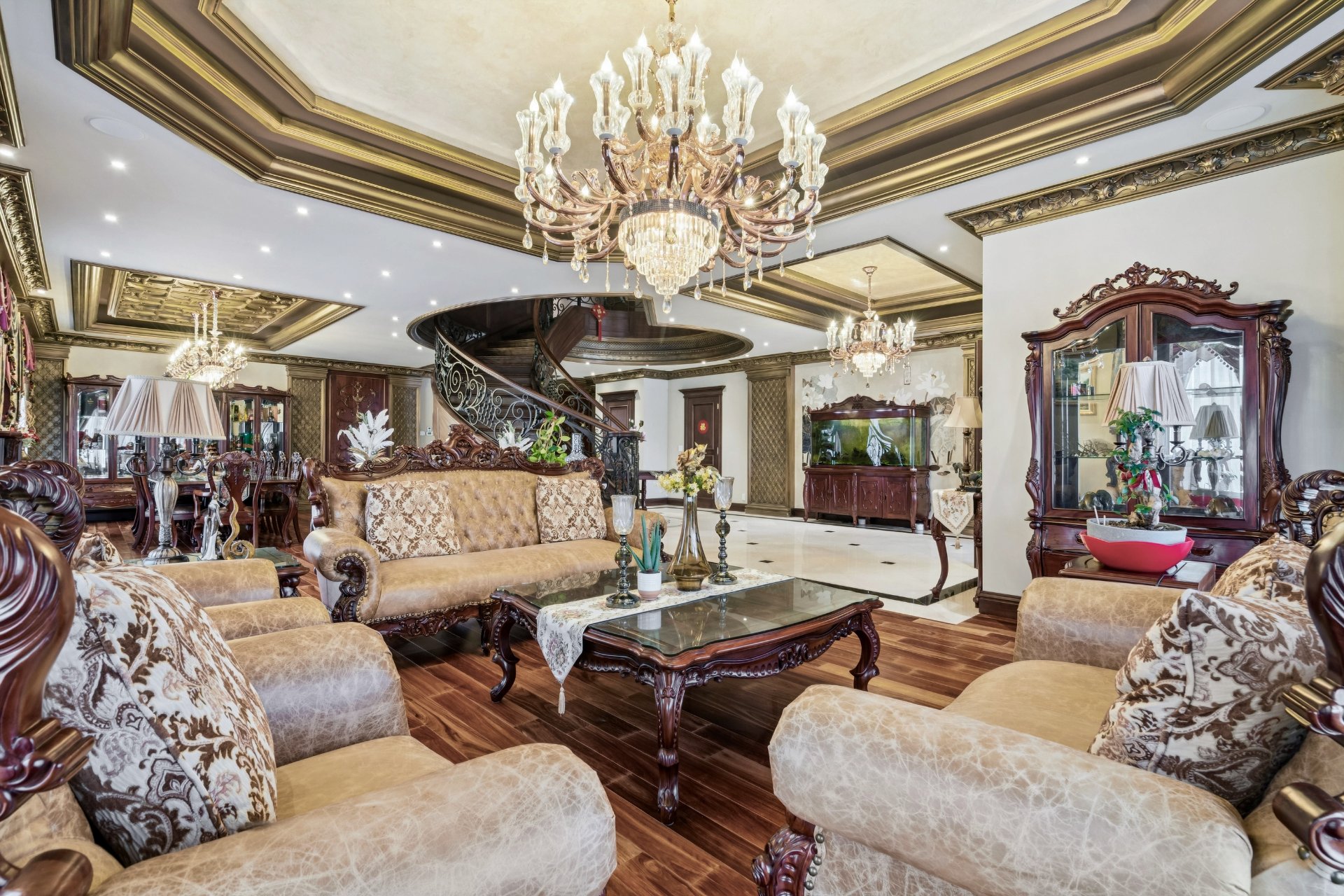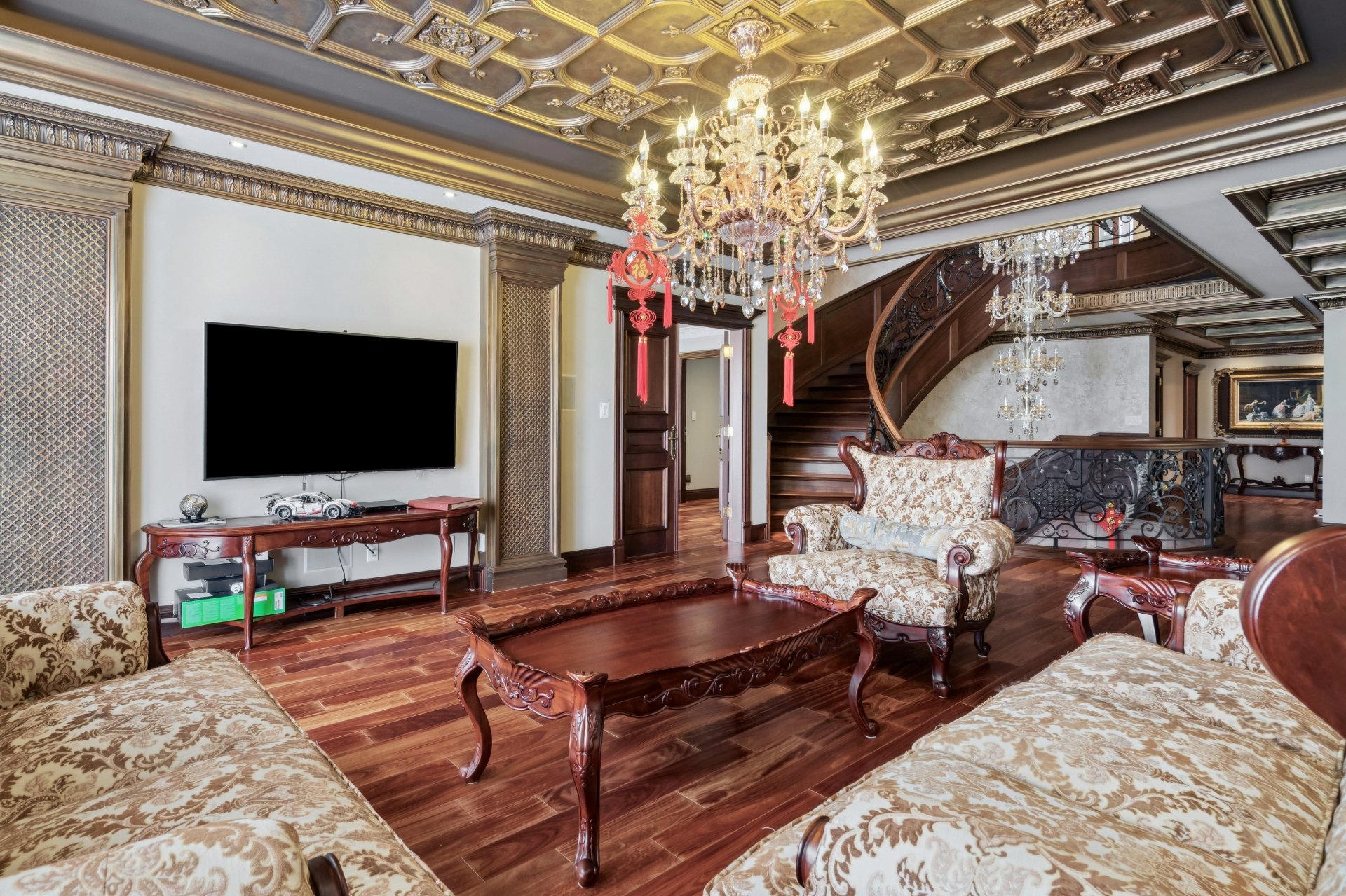 mesure, plafonds décoratifs de style marbre et escalier en