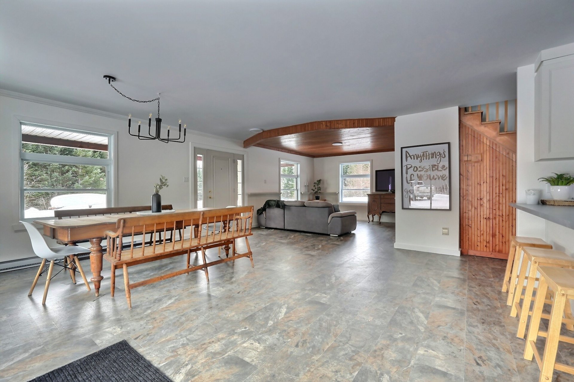 Un terrain de jeu pour les amateurs de plein air! Propriété lumineuse nichée sur près de 100 acres, idéale pour la chasse au chevreuil, VTT ou marche en nature. Possibilité de location à court terme. Le rez-de-chaussée à aire ouverte offre une cuisine rénovée et un hall d'entrée spacieux avec poêle à bois, parfait pour vos retours de plein air. Champ d'épuration prévu pour trois chambres. Un charmant ruisseau traverse la terre, ajoutant une touche de quiétude à cette chaleureuse maison.