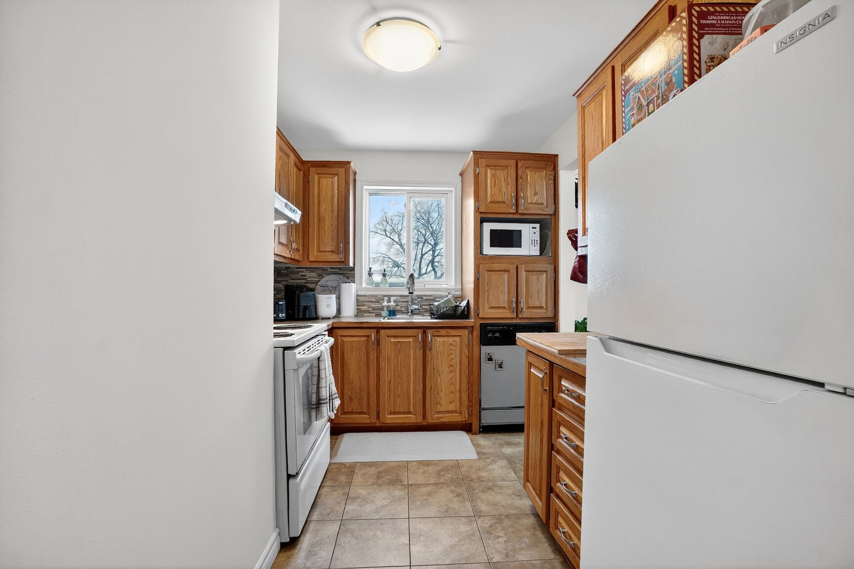 s'ouvre sur une cuisine en L fonctionnelle, offrant une